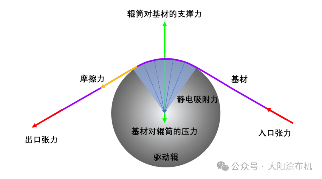 辊筒对基材的支撑力:垂直于接触面,使基材紧贴辊筒。