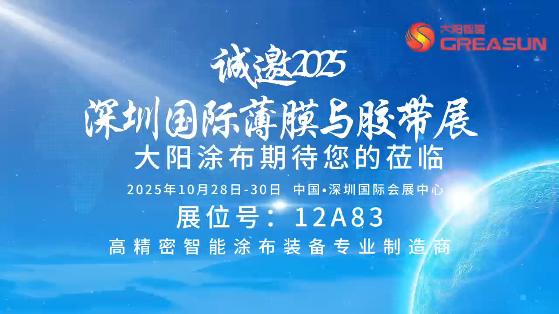 大阳涂布—祝您大展宏“涂”,10月28日深圳薄膜与胶带展,与您不见不散!